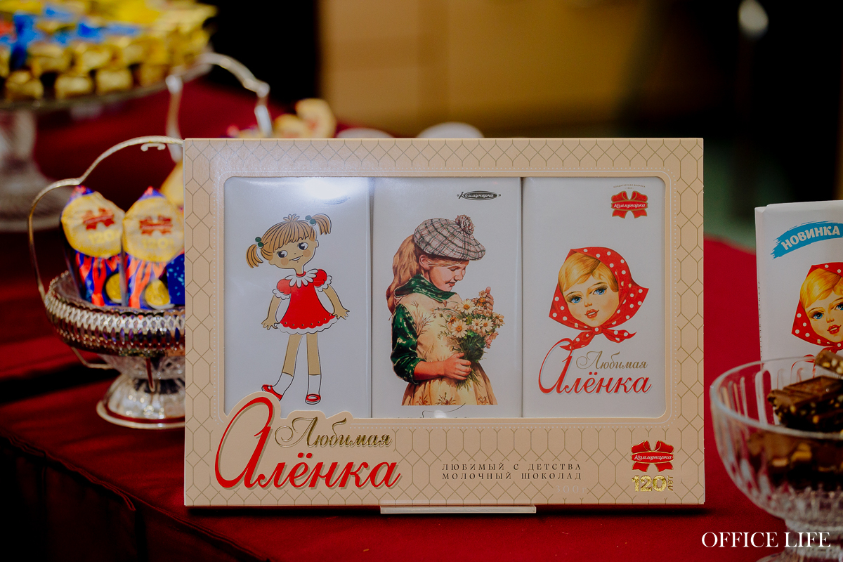 Есть и ретросюрпризы. Первым является возвращение легенды 70-х — конфеты «Селена», вкус которой приятно удивил даже искушенных сладкоежек. Второй — набор молочного шоколада «Любимая Алёнка» в упаковках из разных исторических эпох.