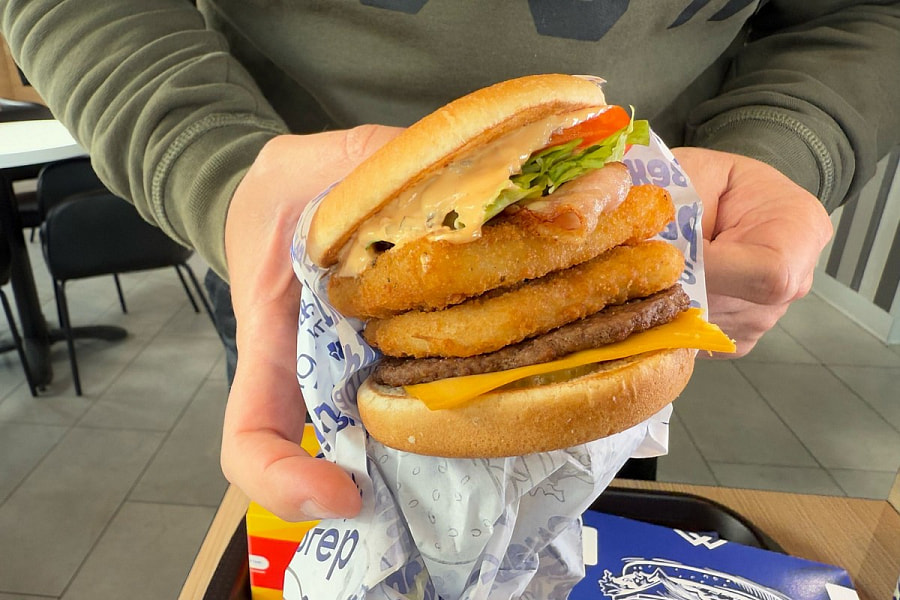 Цены: полесский бургер — 15,90 рубля, несвижский бургер — 16,90 рубля, чизбургер — 3,90 рубля.