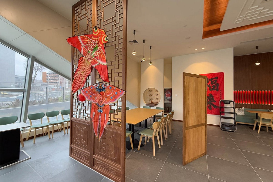 В здании нового бассейна, который строили китайские подрядчики, появился ресторан «Лун Ван». В заведении — блюда китайской кухни. Среди них — много из рыбы и морепродуктов. Интерьер классический для таких заведений: с китайскими фонариками и бамбуковыми ширмами, пишет koko.by.