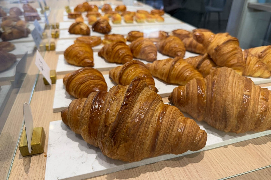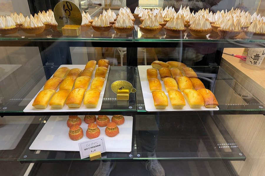 Цены: круассан — 4,5 рубля, лимонная тарталетка — 3,5 рубля, капучино — 6,5 рубля.