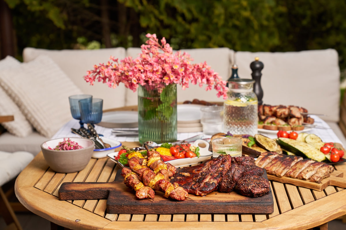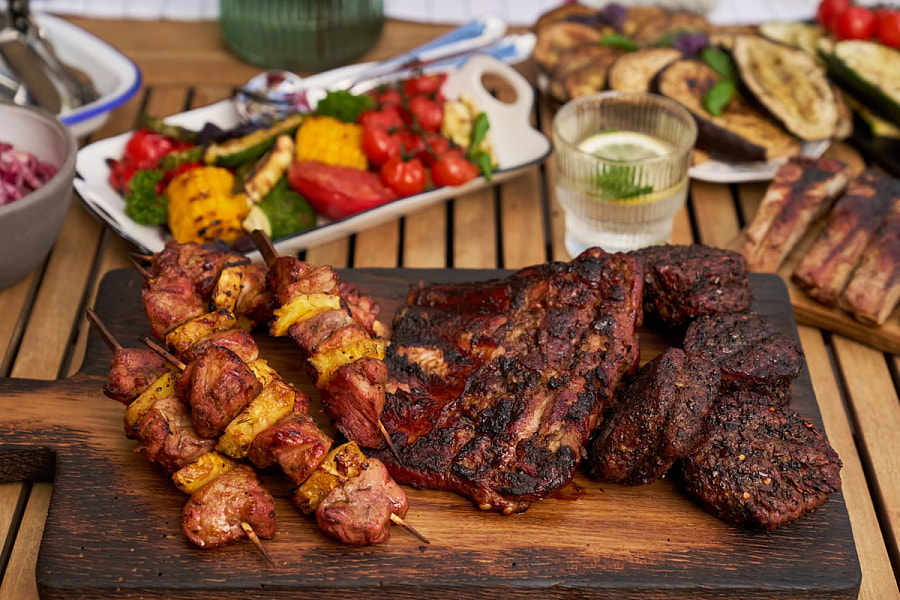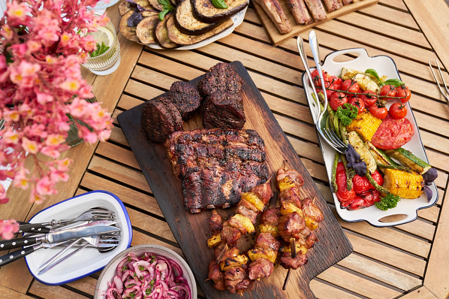 Наши блюда постепенно начали появляться на столе, создавая потрясающе аппетитную картину на террасе красивого загородного дома, во дворе которого проходил наш батл. Ароматы стейков и шашлыков перебивают запах сирени, цветущей вокруг, а мы с нетерпением ждем окончания фотосессии наших блюд. Кстати, из-за этого они успели чуть остыть, но их восхитительный вкус от этого ничуть не пострадал. И ни один из многочисленных соусов не понадобился, подтверждая золотую истину: хорошо приготовленное качественное мясо в улучшениях не нуждается.