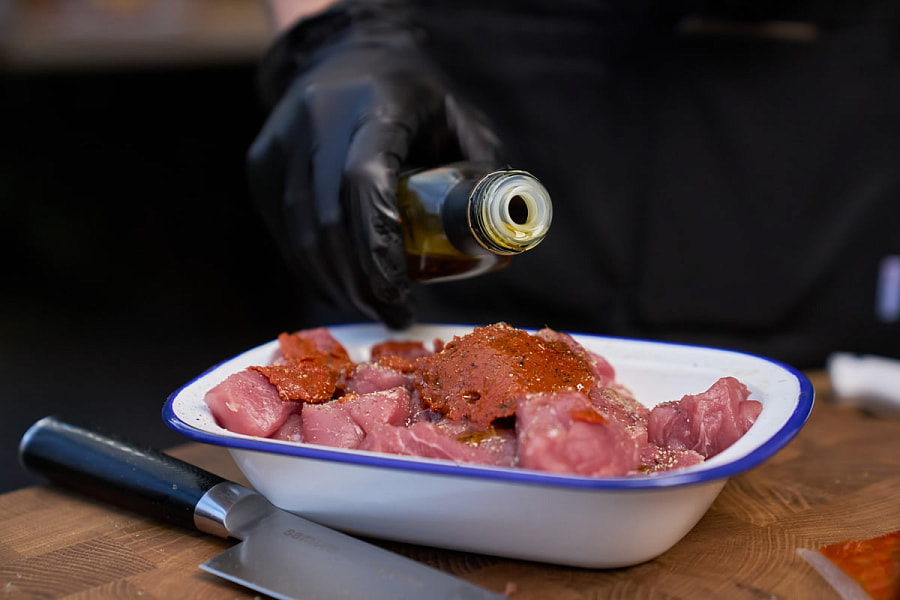Если добавляете готовые специи — смотрите, есть ли в составе соль. Особенно если вы уже посолили мясо. Можно предварительно попробовать смесь.