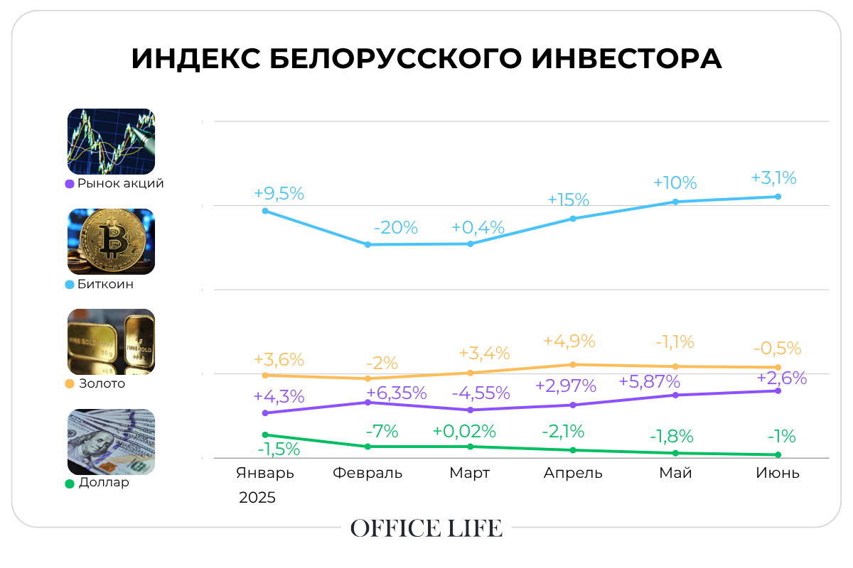 Сколько заработали владельцы биткоинов и золота и что с валютой. Индекс инвестора за июнь
