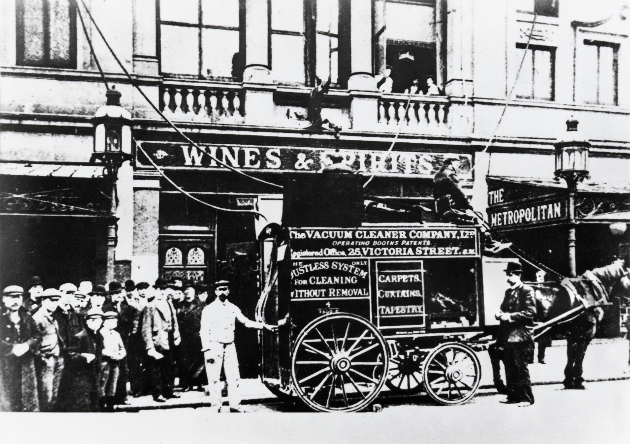 Серьезный прорыв в мире уборки произошел в 1901 году благодаря изобретению Хьюберта Бута. Тогда инженер изобрел нечто под названием Puffing Billy («Фырчащий Билли»). Аппарат был настолько громоздким, что его приходилось помещать в повозку, которую тянула упряжка лошадей. Этот бензиновый агрегат с насосом мощностью в пять лошадиных сил парковали у обочины, а ковры для чистки выносили к нему на улицу.