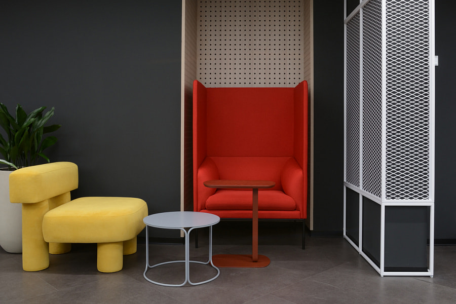 Кроме привычных столов и стульев, компании все чаще заказывают перегородки, стеновые панели и и прочие непривычные пока элементы для создания комфортных зон. Уже давно в тренде — специальные кабины-переговорки. Они хорошо подходят для звонков и мини-совещаний и, как правило, оснащены всем необходимым: звукоизоляцией, местом для сидения, рабочим столом со встроенными розетками и USB. Удобно и то, что их можно поставить в любое место в офисе.