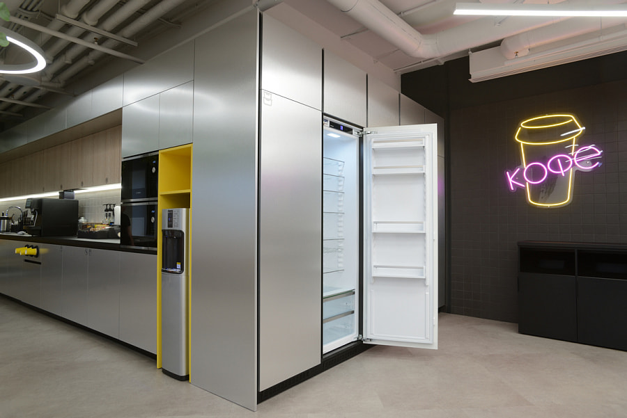 Офисные кухни, кстати, тоже продолжат меняться в сторону расширения функционала. Сергей поделился, что все чаще приходят заказы по установке в офисах кухни, которая имеет широкий функционал и обустроена современными решениями: диспенсеры для кофейных стаканов, установки с подачей газированной или фильтрованной воды.