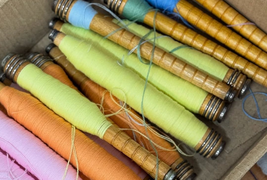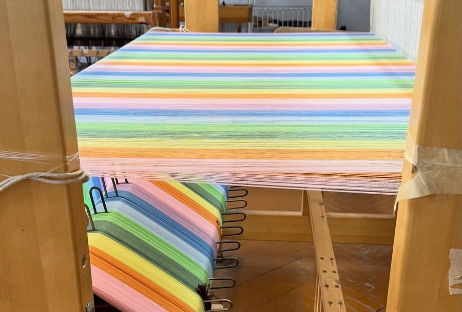 Но 2–3 дня нам требуется просто на подготовку станка к ткачеству, идет намотка основы. И неважно, сколько метров мы мотаем, 2 или 60, станок все равно нужно подготовить, нужно намотать эту основу, сделать проборку, а это 1840 нитей пробрать в рисунок...