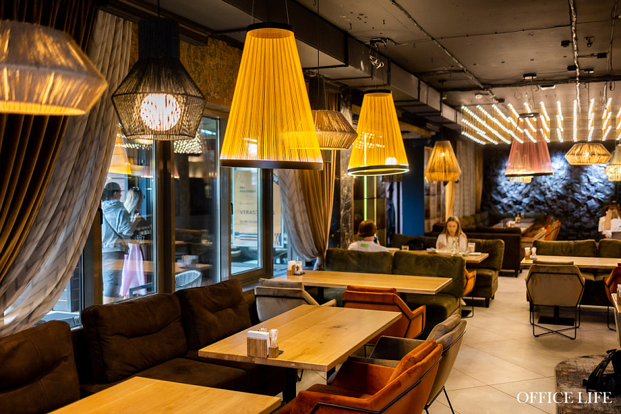 Зал Veras — уютное пространство на 90 гостей с баром, кальянной зоной, где гости смогут насладиться атмосферой живого общения и открытой кухней, демонстрирующей мастерство шеф-поваров в реальном времени.