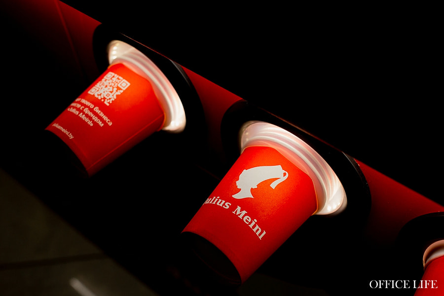 Совладельцы компании Константин Губич и Евгений Грицкевич рассказывают, что одну из своих сетевых кофеен самообслуживания установили в Минском городском центре культуры на ул. Маяковского. Автомат сразу привлекает внимание ярко-красным цветом. Помимо обычных эспрессо, американо, капучино и латте, здесь можно взять напитки с фруктовыми сиропами. Последние включили в меню с расчетом на детскую аудиторию, которая приходит в центр.