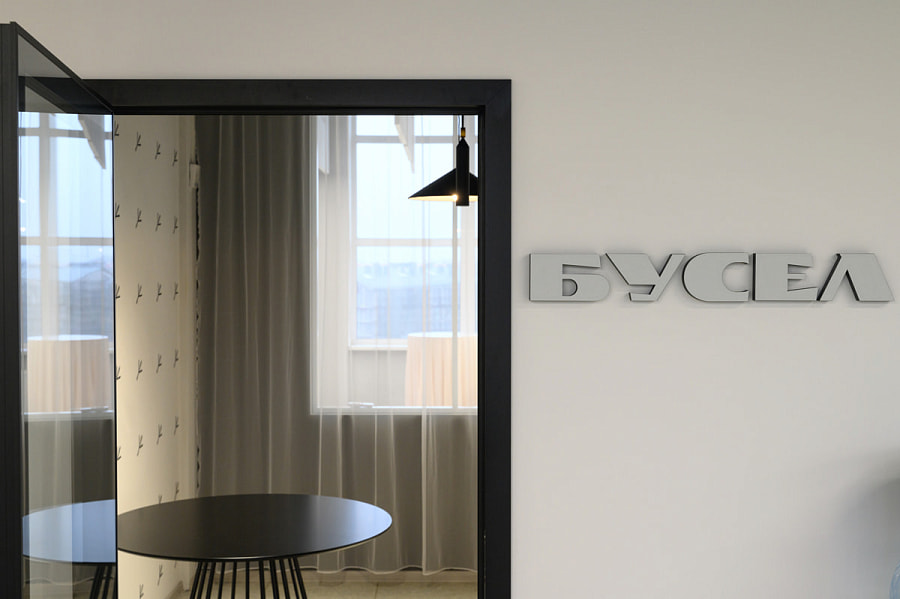 — Запрос у компании был на создание пространства для жизни и работы, — рассказывает Александр Рудович. — Нам хоть и пришлось работать в довольно напряженном темпе, но было легко и интересно. Kufar уже был слаженной, опытной командой, поэтому его менеджеры, которые вели с нами переговоры, четко знали, что нужно, какие пожелания у каждого подразделения, как должны быть организованы коммуникации внутри. И при всем этом у нас оставалось большое поле деятельности для творчества. Нужна была концепция пространства, которая бы цепляла и удерживала. Kufar — это локальный белорусский продукт, который работает на местный рынок. Поэтому после многочисленных мозговых штурмов у нас родилась идея белорусского кода. Родное, понятное, ассоциации, знакомые с детства. Поэтому переговорки и получили названия «Бульба» (на стенах там — огромные рифленые чипсы), «Мара» (это облака и воздушность), «Вандроўка» (она украшена туристическим снаряжением, купленным именно на Kufar. То есть покупатели площадки тоже, можно сказать, поучаствовали в создании нового офиса. Весло, колесо от велосипеда, старый рюкзак — все настоящее, купленное по объявлениям). А еще — «Раніца», «Буська», «Калыханка»...
