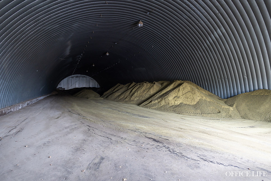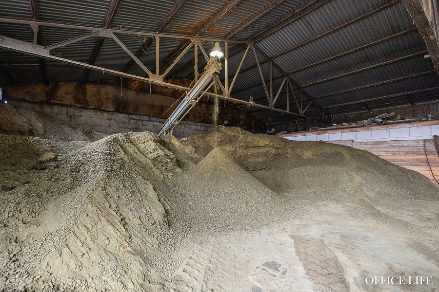 За основным цехом — склад сырья вместительностью 6 тыс. тонн. Пока здесь лежит 800 тонн.