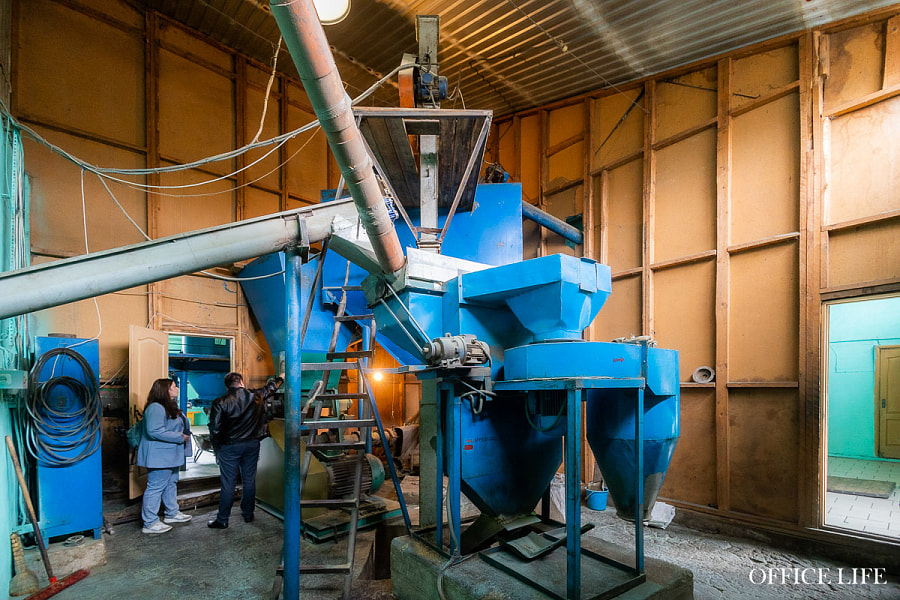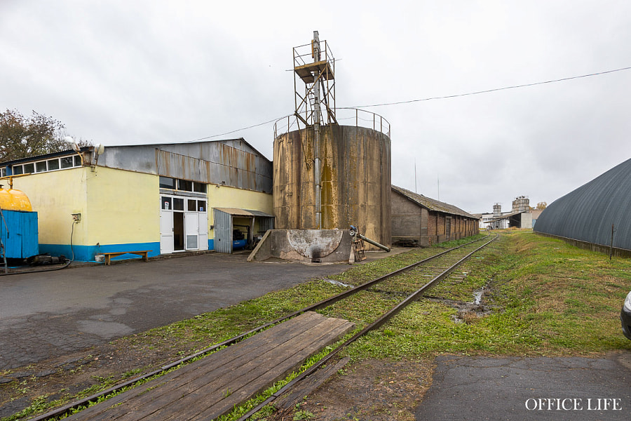 Территория завода — больше гектара. Площадь всех зданий — 3 тыс. квадратных метров. Это склады для рапса и жмыха, цех по переработке и дом, в котором размещены офис и лаборатория по оценке качества сырья. Прямо на территории завода — железная дорога. То, что сюда могут заезжать поезда, удешевляет и упрощает логистику.