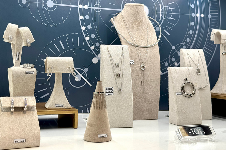 Премиум-украшения с бриллиантами и другими драгоценными камнями, уникальные трендовые коллекции, всегда много новинок;