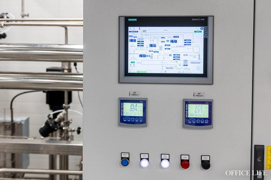 Флаконы выгружаются, идут на обкатку, внешнюю мойку, инспектирование на герметичность и визуальный контроль. Все производственные процессы предприятия завязаны в сложную технологическую цепочку, которую контролирует компьютерная программа. Следить за ней, к слову, работники могут в том числе и удаленно с помощью компьютера или смартфона.