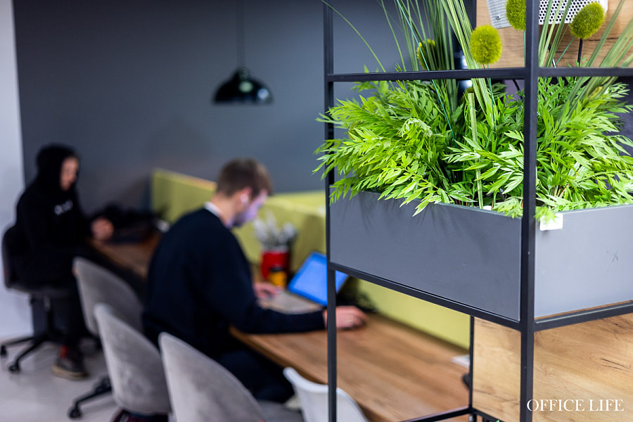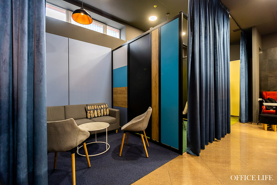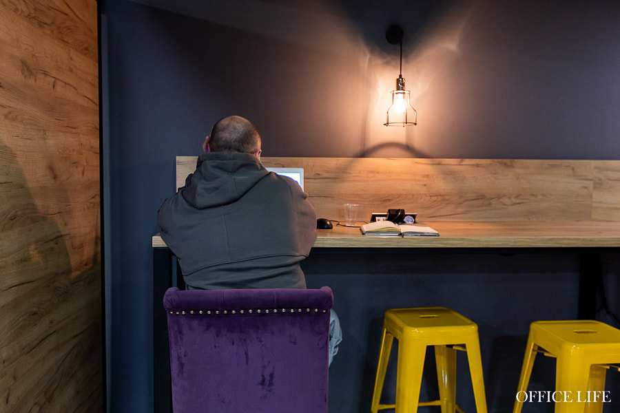 В среднем в день хаб на Немиге посещают от 50 до 100 человек. Кто-то работает в переговорках, кто-то — за столами в общем пространстве. А кому-то нравятся укромные уголки с высокими стульями, как в баре, или мягкие диваны у окна.
