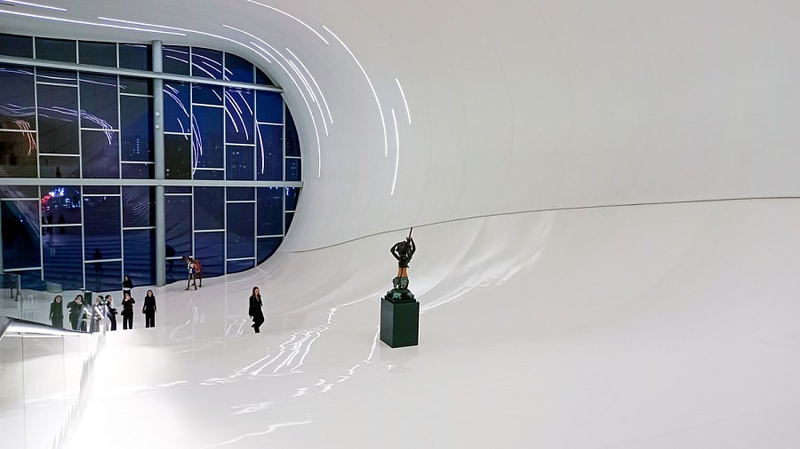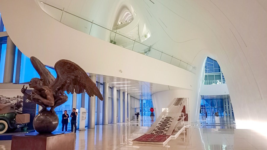 Советуем также обязательно сходить в Центр Гейдара Алиева. Фактически это музей не только первого президента страны, но и истории и культуры Азербайджана. Он находится в современном здании, в котором, как говорят, нет ни одного прямого угла. Молодежи точно понравится.