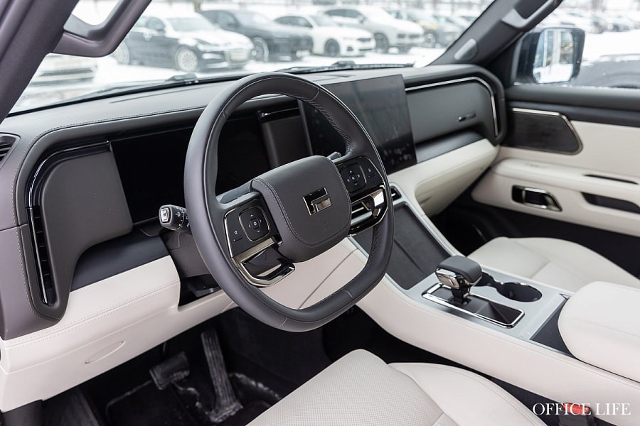 К слову, благодаря использованию алюминиевого сплава в конструкции шасси производителю удалось снизить общий вес автомобиля до 3,3 т и одновременно повысить устойчивость к коррозии, что важно как раз для наших широт. Пневмоподвески в этой машине нет, зато есть несколько режимов регулирования подвески, которые работают очень неплохо.