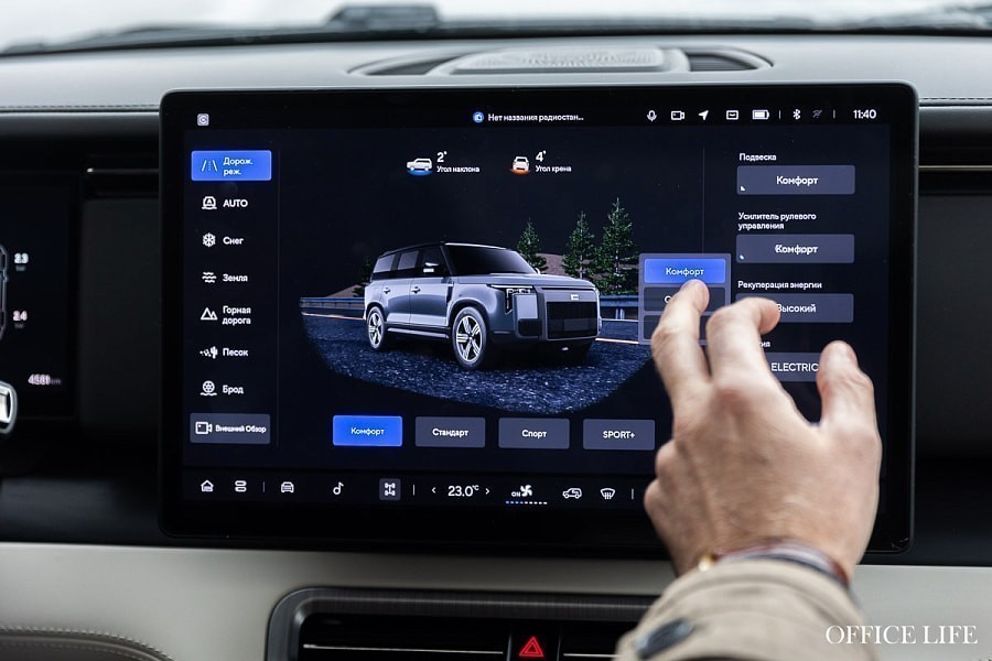 Конечно, с тонкостями режимов и настроек «под себя», которые выводятся на большой 15,7-дюймовый центральный дисплей, нужно разбираться индивидуально, но радует, что здесь все изначально русифицировано. Нет никаких иероглифов, работают мобильное приложение и мастер-аккаунт. Сразу чувствуется, что это машина от «официалов». И этим тоже отчасти объясняется приличная цена.