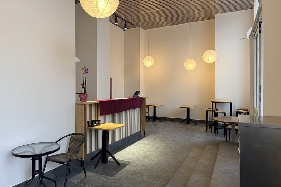 Работает заведение пока в тестовом режиме, а попасть в него можно в любой день недели с 11 до 23 часов. Интерьер оформлен в серых тонах с бордовыми шторами. Посадочных мест — 60.