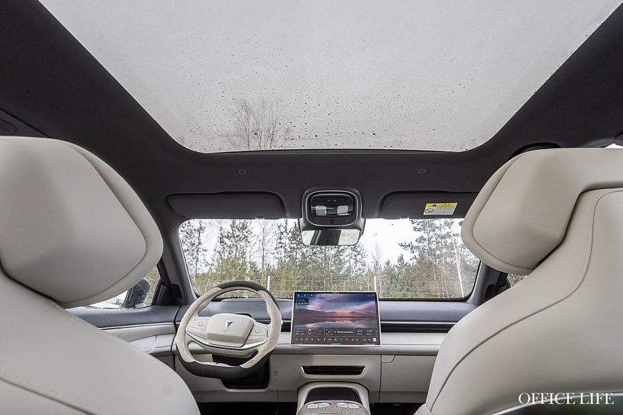 Полезными оказались камеры на 360° и даже проекция приборной панели на лобовое стекло. К ней нужно привыкнуть, но потом понимаешь, насколько это удобно, потому что не нужно отводить взгляд и отвлекаться от дороги. Аналогично — с отсутствием кнопок и тем, что все настройки на дисплее неудобно менять во время движения, на что жалуются многие водители.