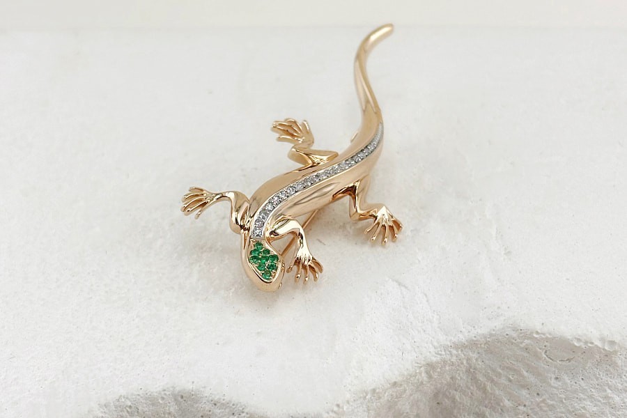 — В этом году актуальны природные и анималистические мотивы, — говорит эксперт в мире драгоценностей. — Их в своих изделиях использовал Primo Prezioso — молодой и смелый бренд, вдохновленный Италией. Например, золотая брошь «Ящерица» с изумрудами и бриллиантами подойдет в качестве подарка любительницам необычных аксессуаров и творческим натурам.