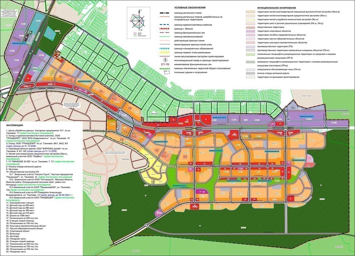 Например, при строительстве района изначально была запланирована буферная зона в виде леса, дороги, стоянок и социальных объектов, которые не предполагают постоянное проживание людей (поликлиника, детские сады, школы и торговые центры). «Минскпроект», со своей стороны, тоже предусматривает наличие буферной зоны в виде зеленого бульвара и дороги. Также застройщик обещает понижение этажности в своем районе при приближении к Зеленой гавани.