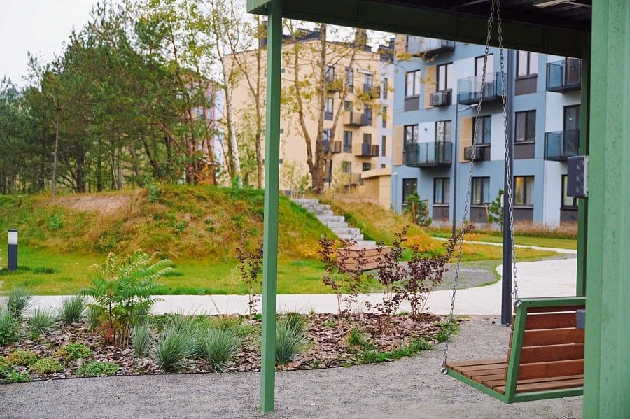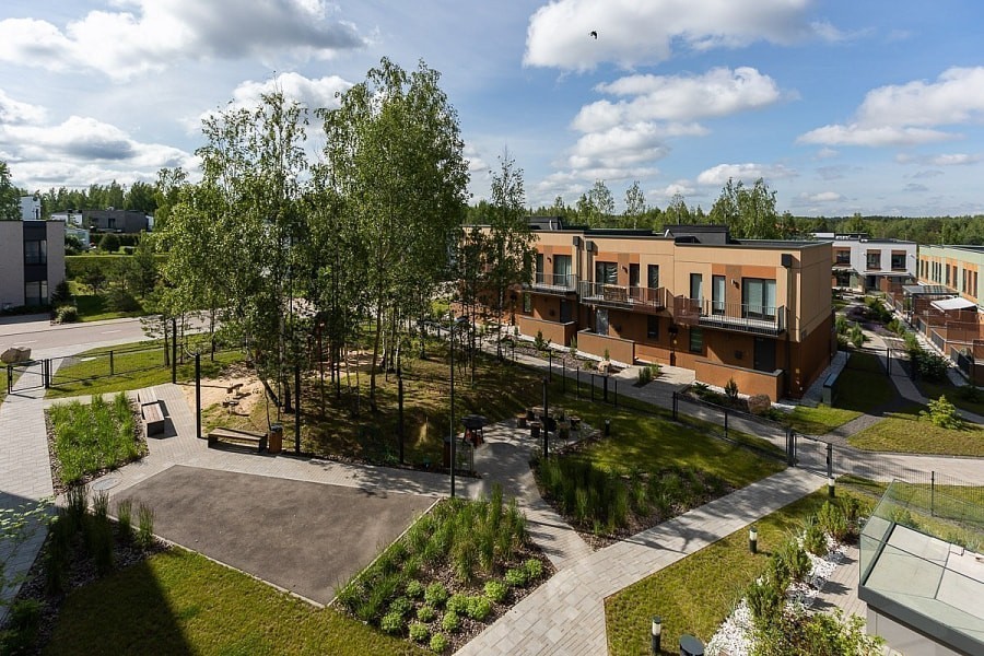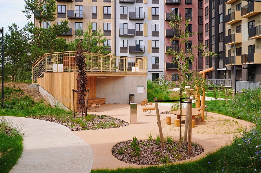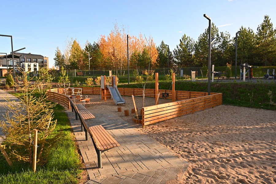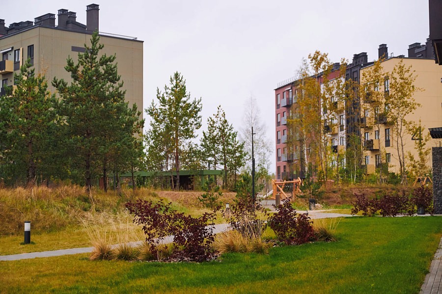 Главная концепция района — город на природе. Микрорайон сочетает городской комфорт и преимущества жизни в окружении природы. Недвижимость в районе — разнообразная и преимущественно малоэтажная: коттеджи, таунхаусы, ситихаусы, лайнхаусы, дуплексы и новый формат жилья «квартиры с личным садом» таунгардены. Отдельное внимание уделено созданию удобной инфраструктуры, привычной городскому жителю: зоны отдыха, детские площадки, магазины, кафе и полноценная социальная инфраструктура, включая детские сады, школы, поликлиники и торговый центр. При этом во время строительства природный ландшафт сохраняется максимально: уже сейчас район утопает в зелени. Дворовая территория продолжает концепцию приватности. Все дворы закрытые и доступ к ним есть только у жителей и у собственной обслуживающей организации, которая следит за порядком на территории.