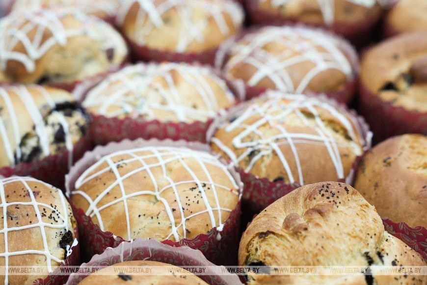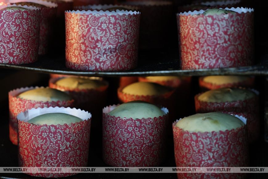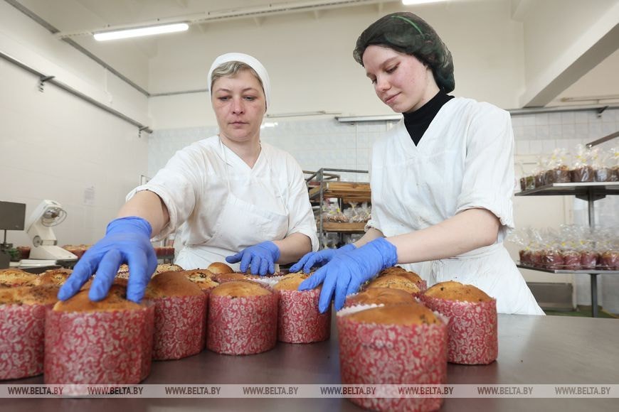 Минский хлебозавод № 6 еще с конца марта перешел на усиленный режим работы. Только в кондитерском цеху в сутки выпекают около тонны пасхальной сдобы, а к выходным объем увеличат почти вдвое. Из 18 наименований пасхальной сдобы самый ходовой вариант — кекс «Акварель» с изюмом«. В столичных торговых сетях он стоит 4,5 рубля (за 300-граммовый кулич).
