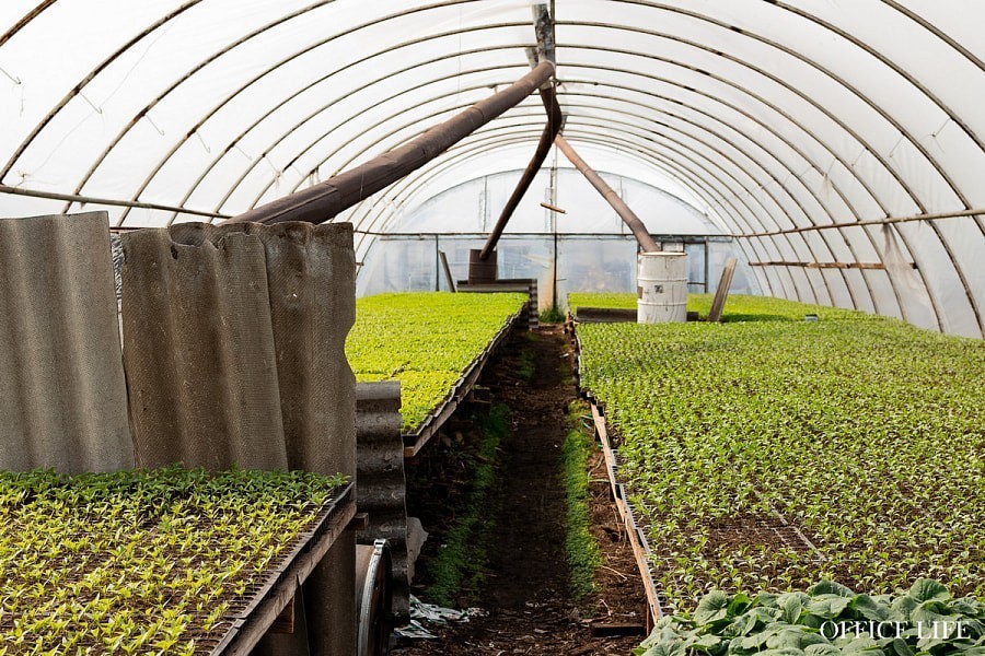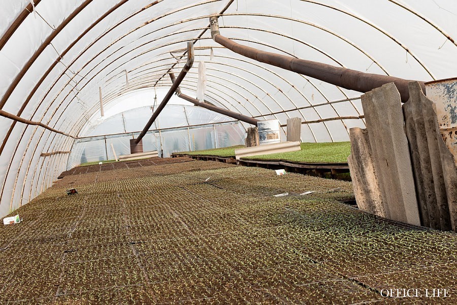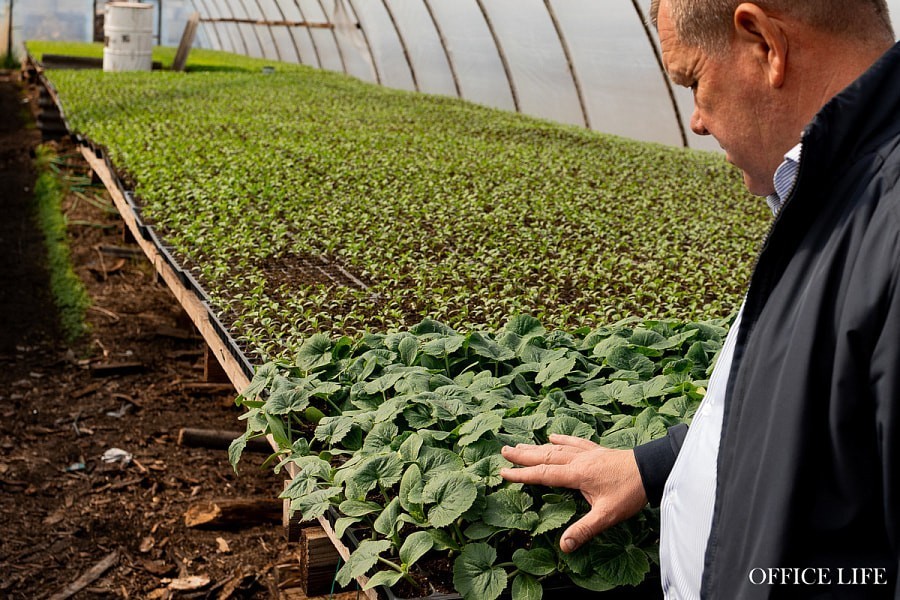 В сервисной зоне, из которой идет погрузка, встречаем троих сыновей Владимира. Младший Никита выходит из погрузчика, его старший брат Коля только что был на поле — смотрел за капустой. А среди отдельных парников, где выращивают рассаду, встречаем старшего Игоря.