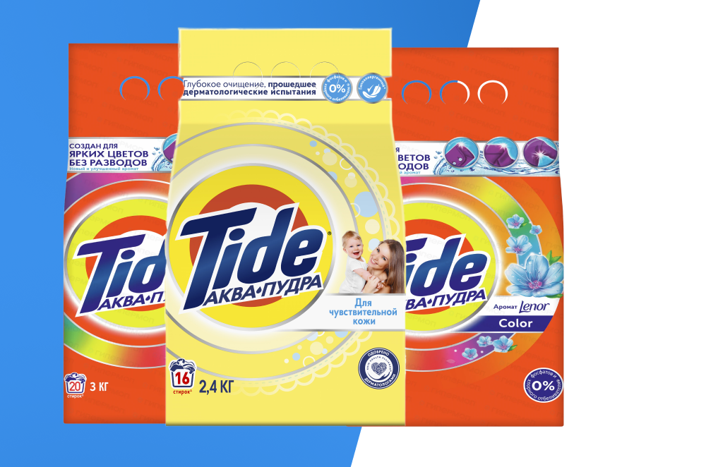 Компания Procter & Gamble, владеющая брендами Tide, Ariel и «Миф», остается крупнейшим игроком с долей рынка около 44%. Производитель не покинул российский рынок, хотя и сократил инвестиции в новые проекты. Бренды Tide и Ariel особенно популярны благодаря высококачественным формулам, которые эффективно отстирывают загрязнения даже в холодной воде.