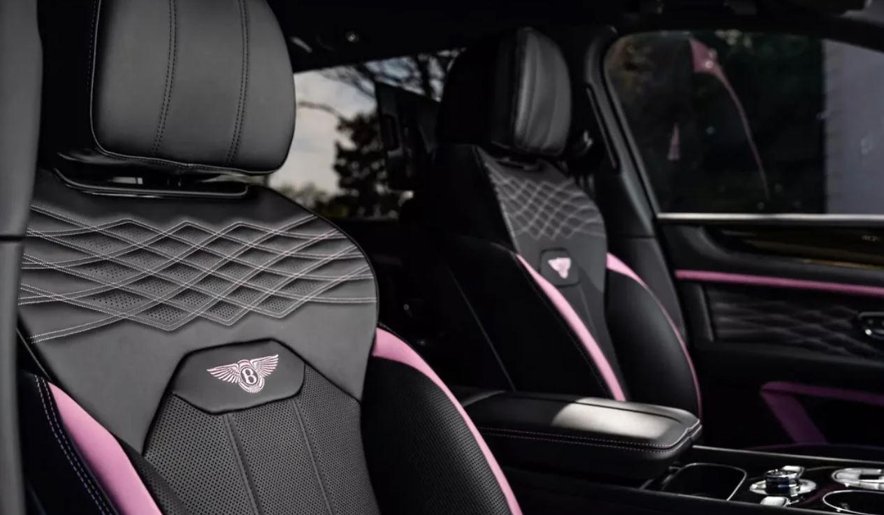 Тему с розовым цветом продолжили и в интерьере. В этом оттенке сделали кожаные вставки на креслах, коврики и элементы дверных карт.
