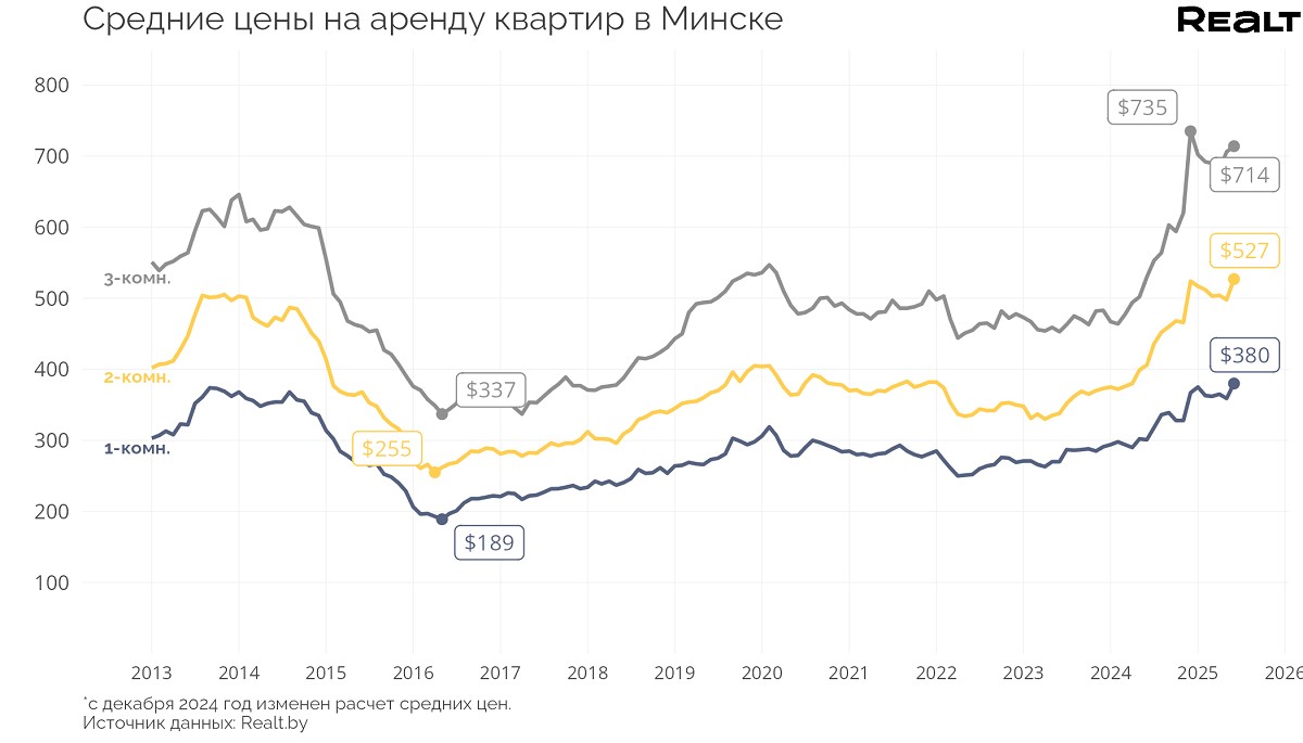 Например, за июнь средние цены на долгосрочную аренду 1-комнатных квартир, которые выставляют их собственники, выросли на 5,85% — до $380, на 2-комнатные — на 5,82%, до $527, а на 3-комнатные — на 1,13%, до $714.