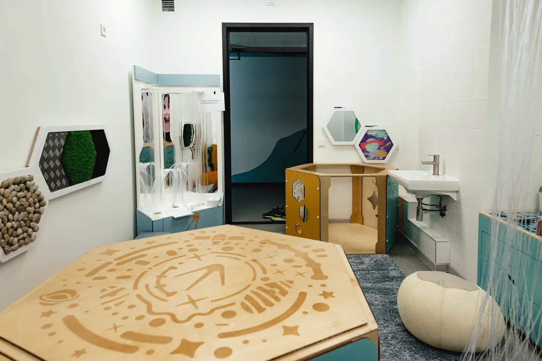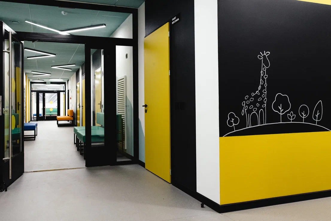 В детском корпусе также есть сенсорная комната для абилитации, которая предназначена для ранней терапии новорожденных с патологиями. Все зоны адаптированы для людей с ограниченными возможностями: широкие проходы, пандусы, лифты, доступ ко всем кабинетам и зонам обслуживания.