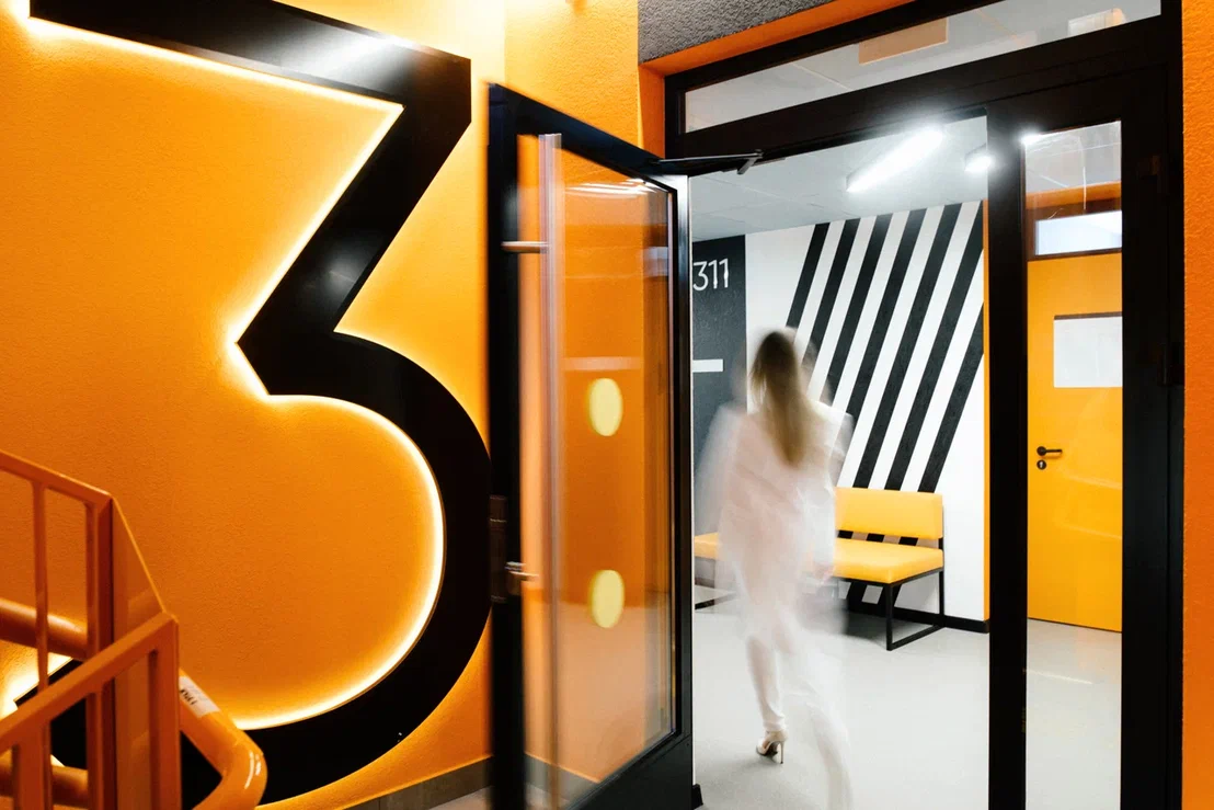 При этом все кабинеты врачей оформлены в нейтральных светло-серых тонах. Два корпуса медучреждения — семиэтажный для взрослых и четырехэтажный для детей — соединяет стилобат-коридор, который позволит врачам перемещаться между зданиями, не выходя на улицу.