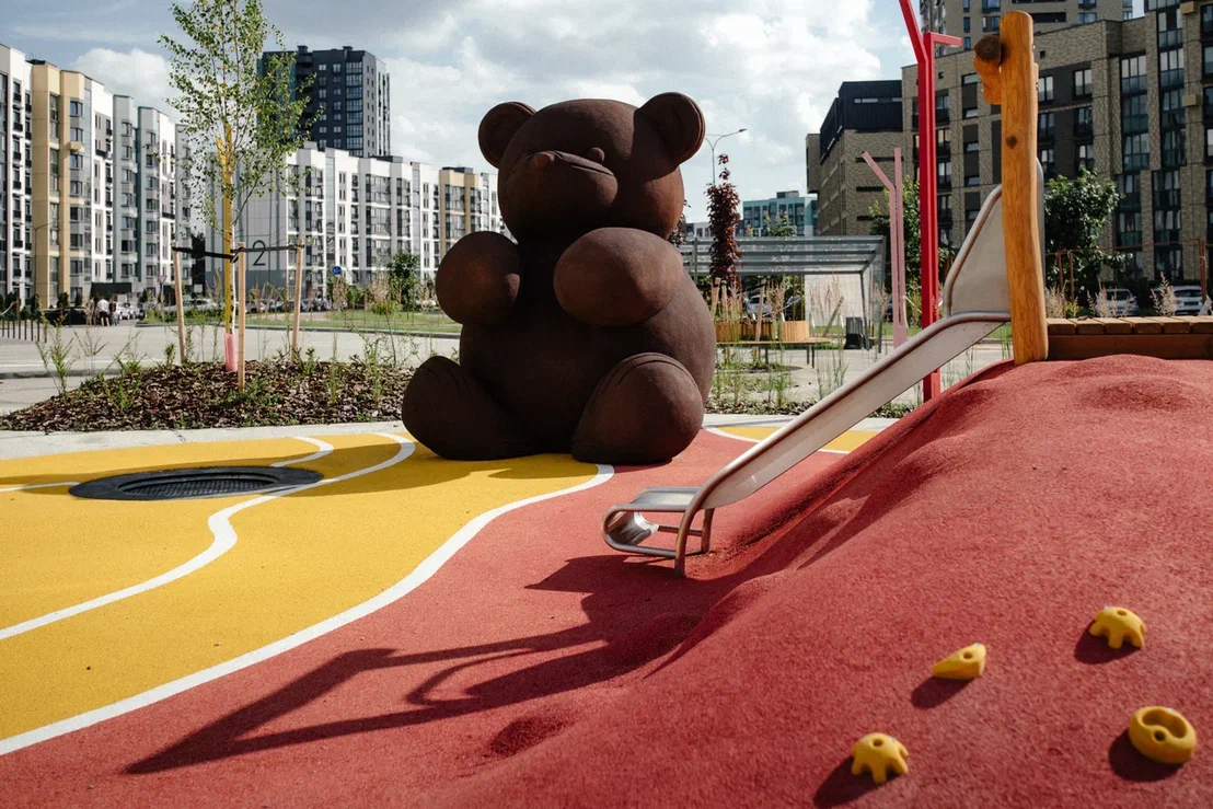 Удивляет поликлиника еще во дворе: пешеходные и зеленые зоны, места отдыха, детская площадка с горками, батутом и симпатичным огромным мишкой — все для того, чтобы снять стресс перед походом к врачу.