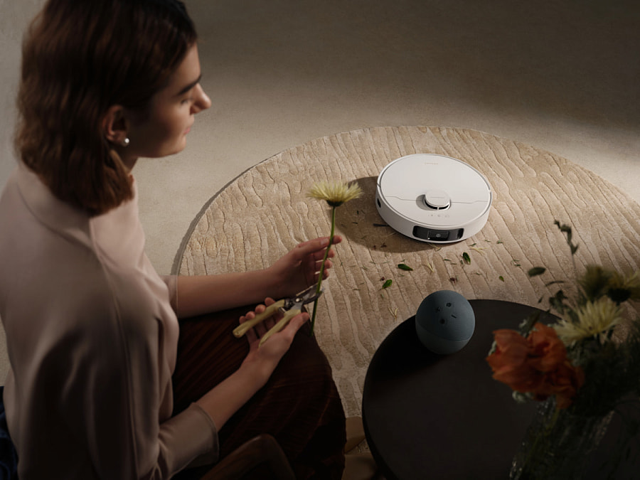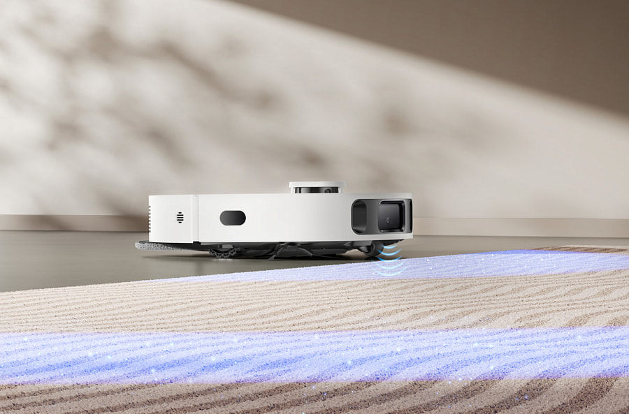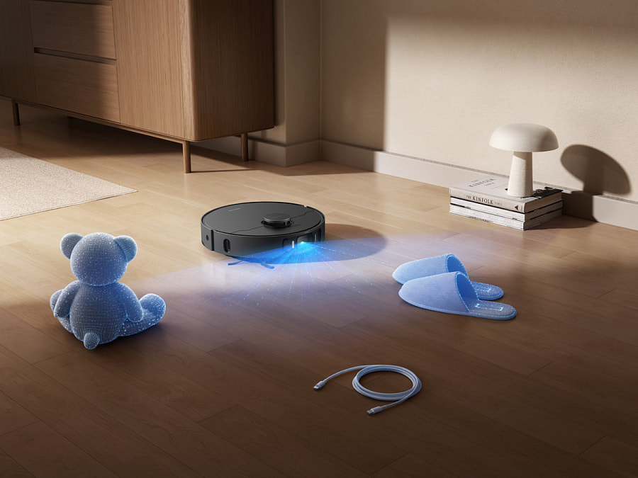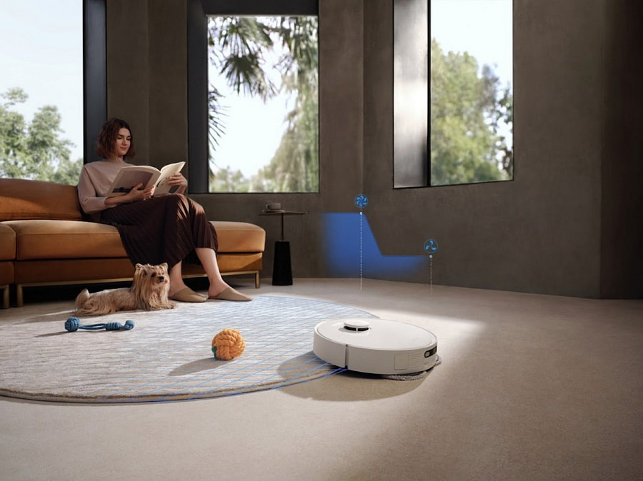 Еще одна «фишка» — это специальная технология 3D-сканирования на основе структурированного света, а также интегрированная в девайс система AI Action. За счет них пылесос может распознавать до 200 предметов, в том числе продукты жизнедеятельности домашних животных. При обнаружении «нестандартного объекта» пылесос отправит вам уведомление. Никаких самостоятельных действий гаджет до вашего решения предпринимать не будет.