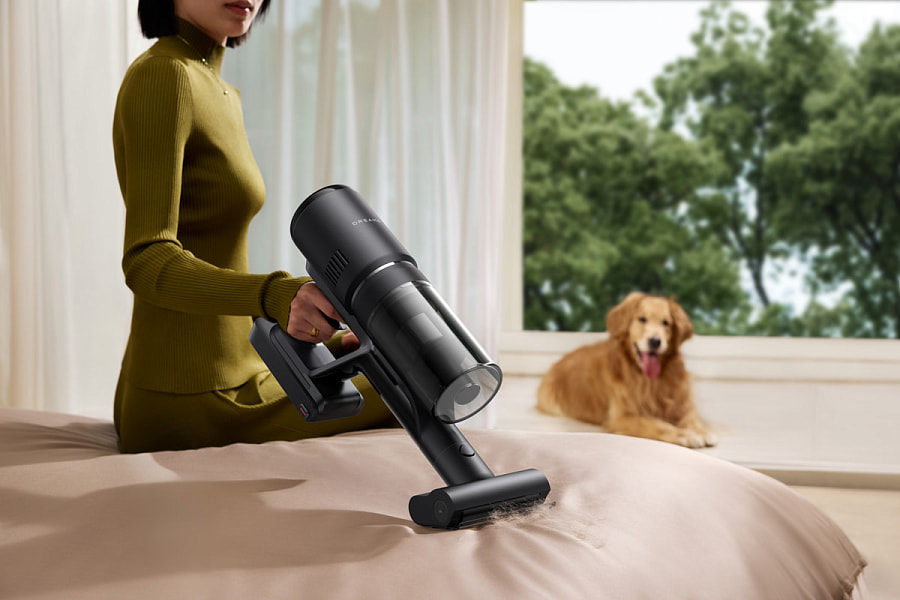 Вертикальный моющий пылесос, который является одним из хитов продаж Dreame. И это неудивительно: гаджет сочетает в себе сразу несколько функций. Во-первых, он может быть обычной «вертикалкой», с помощью которой вы избавите квартиру от пыли и более крупного мусора. Меняем насадку — и вот у нас уже есть высокоинтеллектуальная швабра, которая сметает все на своем пути. И это не фигура речи: девайс может втянуть в себя разбросанные кусочки каши, спагетти, без разводов стереть с пола соусы или разлитый кофе. В процессе он будет регулярно очищать насадку для мытья, убирая с нее загрязнения и подавая чистую воду, — никаких липких пятен не останется. Еще раз меняем конструкцию гаджета — и получаем пылесос для мебели или авто, который справится с чисткой кресел и диванов не хуже, чем опытный клинер.